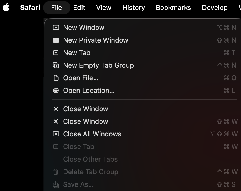 The keyboard shortcut ⌘W to close windows in MacOS is a very useful and instinctive practice. The issue arises with tabbed windows. When the last tab in a tabbed window is closed the window itself closes. Although this is correct, it is annoying for some use cases. For example, I normally have just one window of Safari in full screen with several tabs open. I close tabs using ⌘W and open them with ⌘T. All is great until I close the last tab and the window itself closes. The annoyance is that ⌘T doesn’t open a new window in fullscreen even if the last one closed was fullscreen.